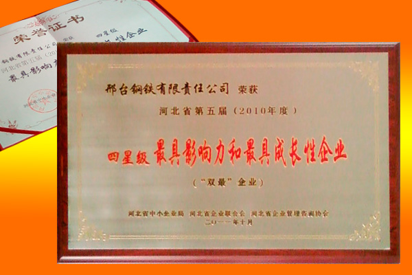 Xingtai Steel was awarded the Most Influential Enterprise and the Most Potential Growth Enterprise.