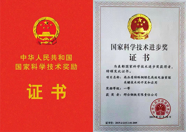 邢鋼“高品質(zhì)特殊鋼綠色高效電渣重熔關(guān)鍵技術(shù)的開發(fā)和應(yīng)用”榮膺國家科技進(jìn)步一等獎(jiǎng)