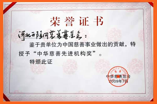 2009年7月,中華慈善總會授予邢鋼慈善基金會“中華慈善先進機構獎”。