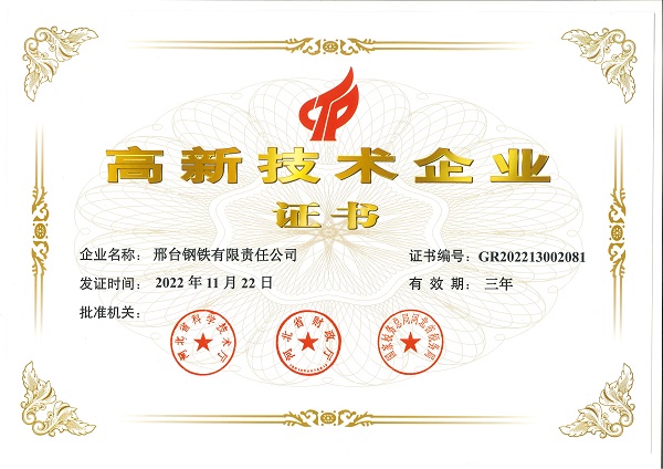 - 邢鋼榮獲“2022年度河北省冶金行業(yè)質(zhì)量管理活動(dòng)優(yōu)秀組織獎(jiǎng)”
