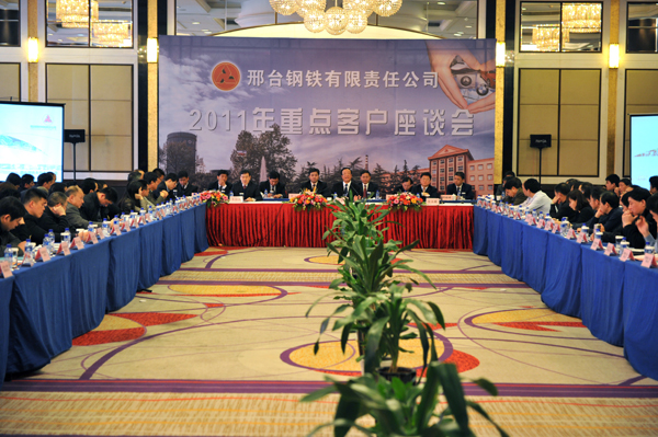 為進一步加強溝通交流,征詢廣大客商意見和建議,公司2011年度重點客戶座談會于12月19日—20日在江蘇省無錫市召開。公司董事長、總經(jīng)理袁世臻、常務副總經(jīng)理張永藏出席了會議。來自韓國、印度、香港和臺灣地區(qū)的11家19名客戶代表和全國各地的160余家單位230多名生產(chǎn)商、貿(mào)易商代表參加了會議。