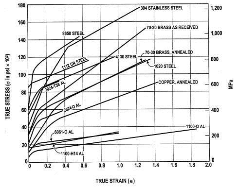 多種真實金屬材料的真應(yīng)力真應(yīng)變曲線