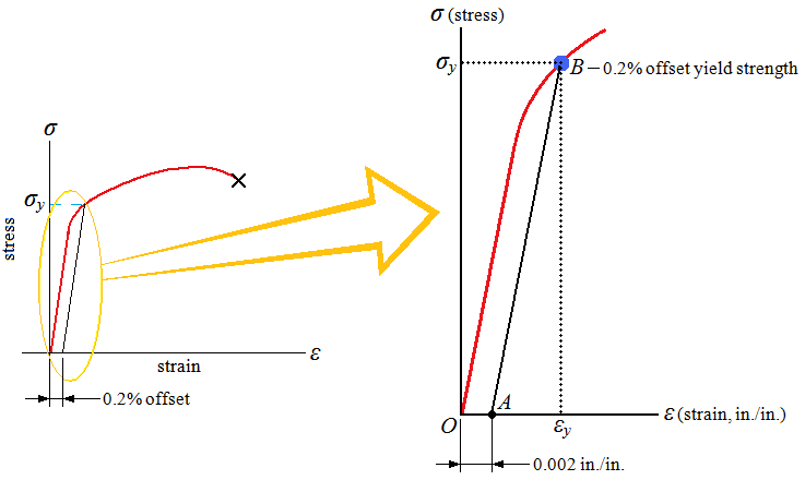 常用的金屬一般為多晶體金屬,因此工程實際金屬起始塑性變形具有非同時性特征。在拉伸曲線上具體反映就是沒有明顯的屈服點。那么,如何界定工程實際金屬發(fā)生了塑性變形呢?殘留塑性變形量就成為重要的依據(jù),人們通常人為地把一定殘留塑性變形量時工程金屬對應(yīng)的抗力作為屈服強度,也稱為條件屈服強度。這很好理解,沒有明顯的塑性屈服點,就沒有明顯的屈服強度,要想知道實際金屬的屈服強度就需要一個判定條件,因此就有了條件屈服強度。對于不同的金屬構(gòu)件,其條件屈服強度對應(yīng)的殘留變形量不同。對于一些苛刻的金屬構(gòu)件,其殘留變形量規(guī)定應(yīng)較小,而普通金屬構(gòu)件條件屈服時對應(yīng)的殘留變形量則較大。常用的殘留變形量為0.01%,0.05%, 0.1%,0.2%,0.5%和1.0%等。