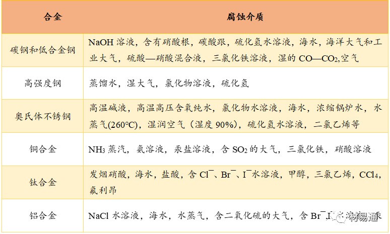 不同合金腐蝕介質(zhì)表