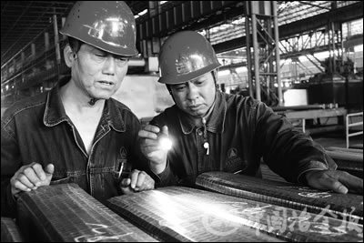 圖為邢鋼線(xiàn)材廠員工對(duì)修磨鋼坯進(jìn)行檢驗(yàn)的現(xiàn)場(chǎng)。