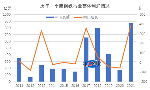 熱點(diǎn)事件:國(guó)家統(tǒng)計(jì)局?jǐn)?shù)據(jù)顯示,2021年一季度,黑色金屬冶煉和壓延加工業(yè)實(shí)現(xiàn)營(yíng)業(yè)收入20483.1億元,同比增長(zhǎng)50.5%;營(yíng)業(yè)成本18837.3億元,同比增長(zhǎng)47.7%;實(shí)現(xiàn)利潤(rùn)總額871.4億元,同比增長(zhǎng)387.6%。