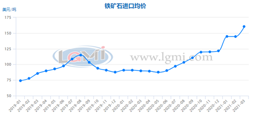 圖4 進(jìn)口鐵礦石月度均價(jià)變化