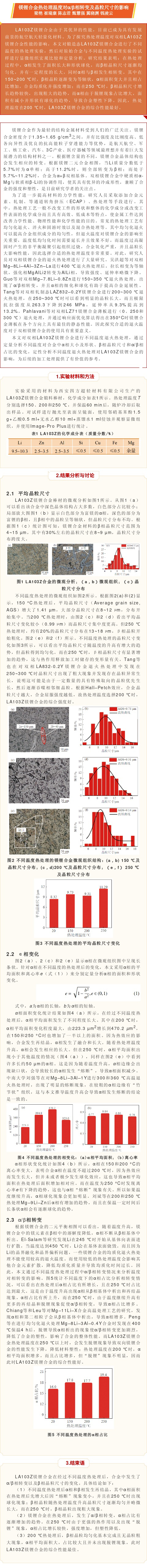 鎂鋰合金熱處理溫度對α/β相轉(zhuǎn)變及晶粒尺寸的影響