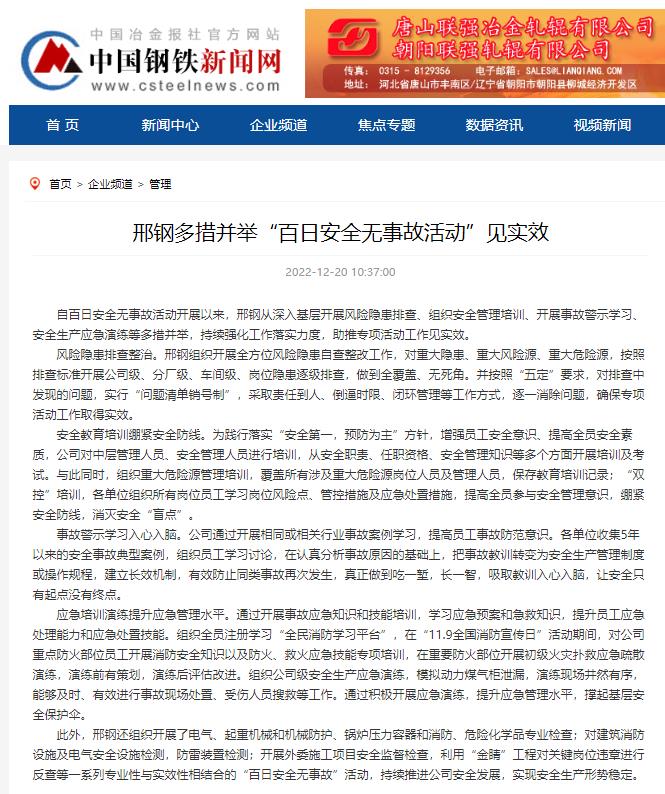 此外,邢鋼還組織開展了電氣、起重機械和機械防護、鍋爐壓力容器和消防、危險化學品專業(yè)檢查;對建筑消防設施及電氣安全設施檢測,防雷裝置檢測;開展外委施工項目安全監(jiān)督檢查,利用“金睛”工程對關鍵崗位違章進行反查等一系列專業(yè)性與實效性相結合的“百日安全無事故”活動,持續(xù)推進公司安全發(fā)展,實現(xiàn)安全生產(chǎn)形勢穩(wěn)定。