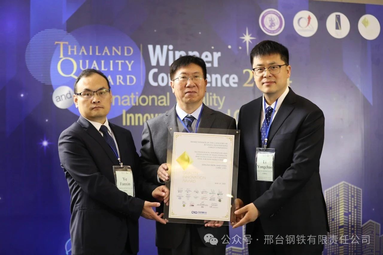From May 22 to 23, 2025, the 2024 International Quality Innovation Competition Release Conference and Award Ceremony was successfully held in Bangkok, Thailand. On the international stage, Xingtai Iron and Steel won the honor for the industry for the first time: the project "Technological Innovation and Application of High-Strength and Ultra-High Purity Cold Heading Steel for New Energy Vehicles" released by its technical R&D team won the first prize of the competition. It is the first international award won by Xinggang and also the first international award won by the steel industry since the launch of the International Quality Innovation Competition.