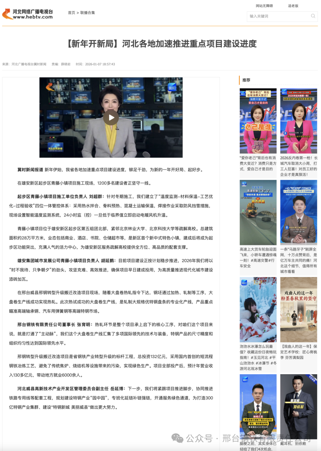 邢臺鋼鐵有限責(zé)任公司董事長 張育明:熱軋環(huán)節(jié)是整個項(xiàng)目承上啟下的核心工序,對咱們這個項(xiàng)目來說,就是打通了“主動脈”,我們這個大盤卷生產(chǎn)線匯集了多項(xiàng)國際領(lǐng)先的技術(shù)與裝備,特鋼產(chǎn)品的尺寸精度和組織均勻性達(dá)到國際領(lǐng)先水平。